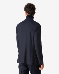 China blue single-breasted pure wool hopsack jacket
