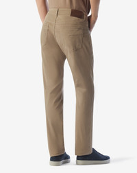 The men's dark beige stretch gabardine five-pocket trousers feature a classic fit and a series of details designed to identify the garment, such as the crest on the coin pocket and leather label on the back. Designed as a versatile garment, the 5-pocket t DETAILS & MATERIALS - 97% cotton, 3% elastane - garment-dyed stretch cotton gabardine 5-pocket trousers - regular fit - Corneliani crest on coin pocket and rear patch - logo buttons and rivets - bottom width 18 cm FIT & WASHING - This garment has a classic fit. The model is wearing a size 34 (IT). Model measurements: height 187cm, chest 98cm, waist 82cm, hips 98cm. Dry clean with perchloroethylene, do not bleach, maximum iron temperature 110A°, do not tumble dry