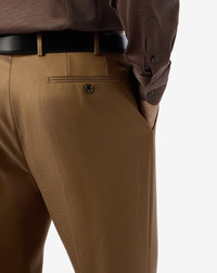Designed for everyday life with style and practicality, these dark beige trousers in virgin wool and stretch cotton offer the perfect balance of comfort and refinement. This garment is part of the Washable Project, designed to ensure easy maintenance without sacrificing sartorial quality, making it ideal for the contemporary man. The regular fit with a flat front enhances the clean, modern silhouette, while side slash pockets and double-welt back pockets with buttons add functional detail. A zipped waistband with belt loops ensures a secure and comfortable fit, complemented by a 19 cm leg opening that defines their balanced proportions. Versatile and dynamic, these trousers embody Corneliani’s philosophy of minimalist, contemporary elegance. DETAILS AND MATERIALS - 51% virgin wool, 47% cotton, 2% elastane - flat front Washable trousers - unlined - drop 7 - regular fit - slant side pockets - double-welt and button back pockets - belt loops - zip and waistband - bottom 19 cm - Washable bag included FIT & WASHING - Warm wash up to 30°, do not bleach, dry clean with perchloroethylene, do not tumble dry, maximum iron temperature 150°