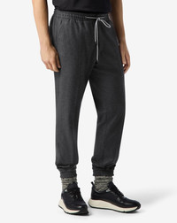 Melange grey chinos made from fine wool and stretch cashmere, designed to combine elegance with performance. Regular fit and superior comfort guaranteed by the stretch waistband on the rear and balanced drop 7. This garment is part of the Techwool Project, a selection of garments featuring this high-tech fabric blending the natural charm of merino wool with the softness and durability of polyamide fibres. This combination generates a compact and versatile texture that is also wrinkle-free and water-repellent, perfect for those who seek a sophisticated yet functional garment. Unlined, flat front trousers featuring waistband, slanted side pockets and welt back pockets, for dynamically smart style that fits both urban and outdoor days. DETAILS AND MATERIALS - 98% cashmere, 2% elastane - joggers - sewn ribbed detail in front - drop 7 - regular fit - drawstring at the waist - elastic at the hem - 4-hole button closure - zipped flap - slant side pockets - welt back pockets with button FIT & WASHING - Dry clean with perchloroethylene, do not bleach, do not tumble dry, maximum iron temperature 110°