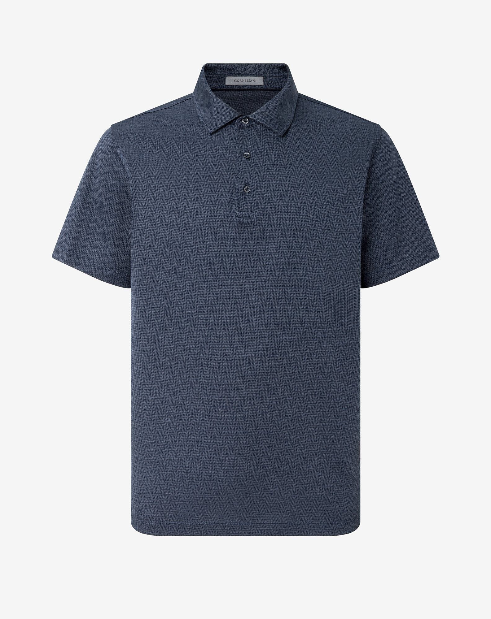 The Men's denim blue short-sleeved lisle thread polo shirt is the ultimate all-rounder of the men's summer wardrobe. Cool and versatile, it adapts to different situations ensuring maximum comfort and breathability. Whether paired with more formal suits or sporty outfits, Corneliani polo shirts are a staple of dynamic, contemporary looks. DETAILS & MATERIALS - 100% cotton - short-sleeved button-up polo shirt made from 60/2 gassed lisle thread with two-tone jacquard stitch FIT & WASHING - The model is wearing a size 50 (IT). Model measurements: height 187cm, chest 98cm, waist 82cm, hips 98cm. Dry clean with perchloroethylene, do not bleach, maximum iron temperature 110°, do not tumble dry