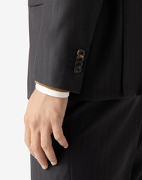 Timeless elegance and a modern design meet in this striped grey pure virgin wool twill suit, part of our Academy Light range. The discreet yet assertive pinstripe pattern enhances the slim fit silhouette, designed for the contemporary man. The single-breasted two-button jacket features 9 cm lapels, AMF tailored stitching and real horn buttons, with flap pockets and double back vents providing a balance between formal style and comfort. The flat front trousers with slash pockets and 19 cm leg bottom complete the dress, for an essential and impeccable look. A garment made in Italy, ideal for those who seek formal elegance with a modern taste. DETAILS AND MATERIALS - 100% virgin wool - single-breasted two-button pin striped wool twill suit - Academy Light range - single-breasted two-button jacket - lined - slim fit - AMF stitching at the edge - notch lapels - lapel width 9 cm - welt outbreast pocket - patch side pockets - double rear vent - horn buttons - back length 74 cm - flat front trousers - slant pockets - welt back pockets with button - belt loops - bottom width 19 cm - Made in Italy FIT & WASHING - This garment has a regular fit. The model is wearing a size 50 (IT). Model’s measurements: height 187cm, chest 98cm, waist 82cm, hips 98cm. Dry clean with perchloroethylene, do not bleach, do not tumble dry, maximum iron temperature 110°