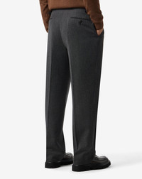 Lightweight and versatile, these Light style grey trousers are crafted from a fine blend of virgin wool and cotton, designed to offer natural comfort and easy elegance. Unlined with a regular fit but a trendy wide bottom, this design is enhanced by a single dart, regular waist and an impeccable structure. DETAILS AND MATERIALS - 57% virgin wool, 43% cotton - single dart trousers - unlined - drop 6 - regular fit - regular waist - zip closure - side adjusters at the waist - slant side pockets - welt back pockets with button - bottom width 24 cm FIT & WASHING - This garment has a regular fit. The model is wearing a size 50 (IT). Model’s measurements: height 187cm, chest 98cm, waist 82cm, hips 98cm. Dry clean with perchloroethylene, do not bleach, do not tumble dry, maximum iron temperature 110°