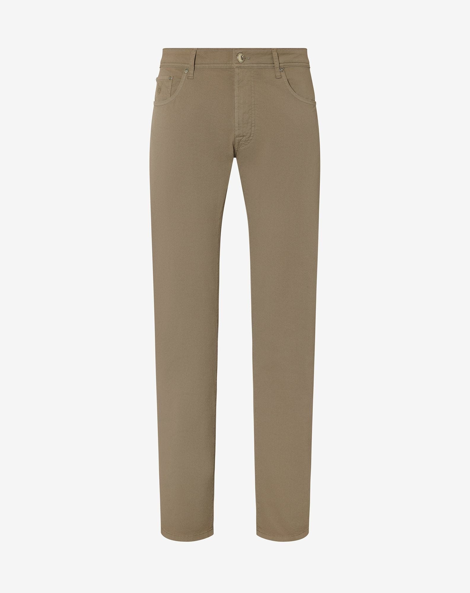 Khaki stretch cotton 5-pocket trousers