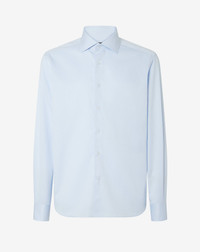 Made of fine pure cotton twill, this light blue shirt strikes an impeccable balance between elegance and everyday functionality. The compact and naturally shiny texture of the fabric enhances the depth of the colour and creates a pleasant sensation on the skin. The classic design with Italian collar, rounded wrist and regular fit adapts effortlessly to any occasion, from formal business to refined leisure. An essential piece of men's wardrobe, finished according to the canons of the best Italian tailoring tradition. DETAILS AND MATERIALS - 100% cotton - long-sleeved cotton twill shirt - regular fit - straight point collar - rounded cuffs FIT & WASHING - This garment has a regular fit. The model is wearing a size 41 (IT). Model’s measurements: height 187cm, chest 98cm, waist 82cm, hips 98cm. Maximum wash temperature 40°, do not bleach, dry clean with perchloroethylene, do not tumble dry, maximum iron temperature 150°