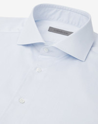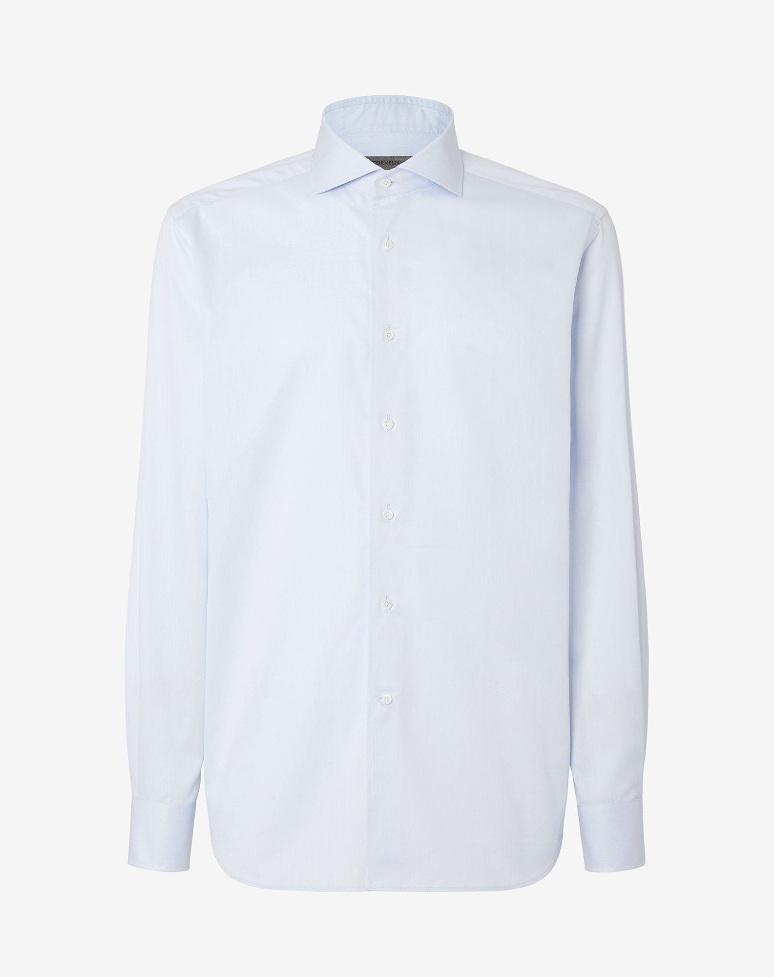 A classic revisited with contemporary craftsmanship. This light blue shirt is made of double-twisted cotton twill, a fine fabric that gives the garment a refined texture and superior durability. Its regular fit ensures comfort and ease of movement, while the French collar and rounded cuffs achieve its understated elegance. An ideal garment for those looking for a perfect synthesis between sartorial tradition and modern style, designed by Corneliani. DETAILS AND MATERIALS - 100% cotton - long-sleeved double-twisted cotton twill shirt - regular fit - French collar - rounded cuffs FIT & WASHING - This garment has a regular fit. The model is wearing a size 41 (IT). Model’s measurements: height 187cm, chest 98cm, waist 82cm, hips 98cm. Maximum wash temperature 40°, do not bleach, dry clean with perchloroethylene, do not tumble dry, maximum iron temperature 150°