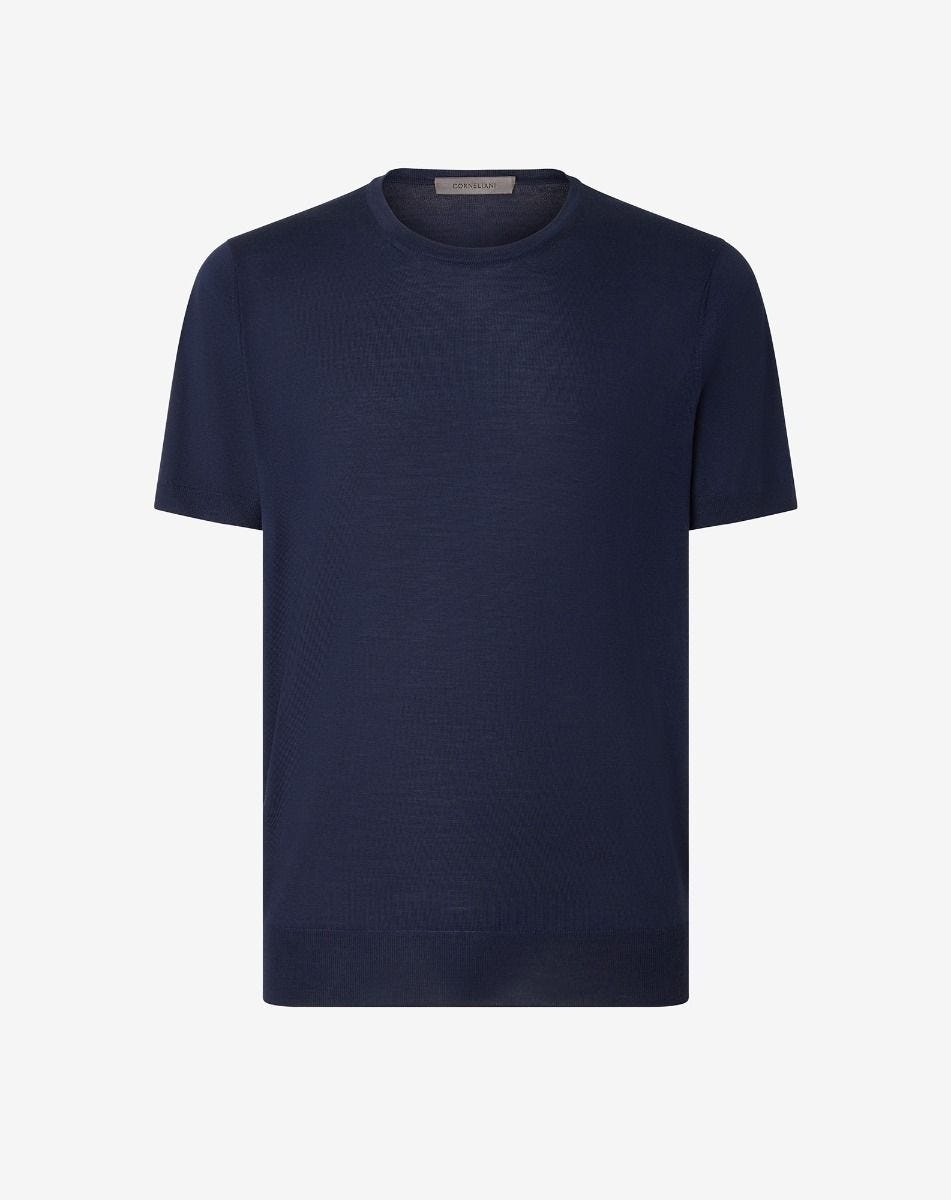 The light blue Men's crew neck jumper made from extra-fine 120s wool is the versatile solution in a man’s springtime wardrobe. Cool and versatile, thanks to its gauge 18, it adapts to different situations ensuring maximum comfort and breathability. Featured in formal or sporty looks, Corneliani’s knitwear is a key element of dynamic and contemporary looks, for those looking for an easy, elegant attitude. DETAILS & MATERIALS - 100% virgin wool - 120's ultra-fine combed wool short-sleeved crew neck jumper - 18 gauge - made in Italy FIT & WASHING - The model is wearing a size 50 (IT). Model measurements: height 187cm, chest 98cm, waist 82cm, hips 98cm. Dry clean with perchloroethylene, do not bleach, maximum iron temperature 110°, do not tumble dry