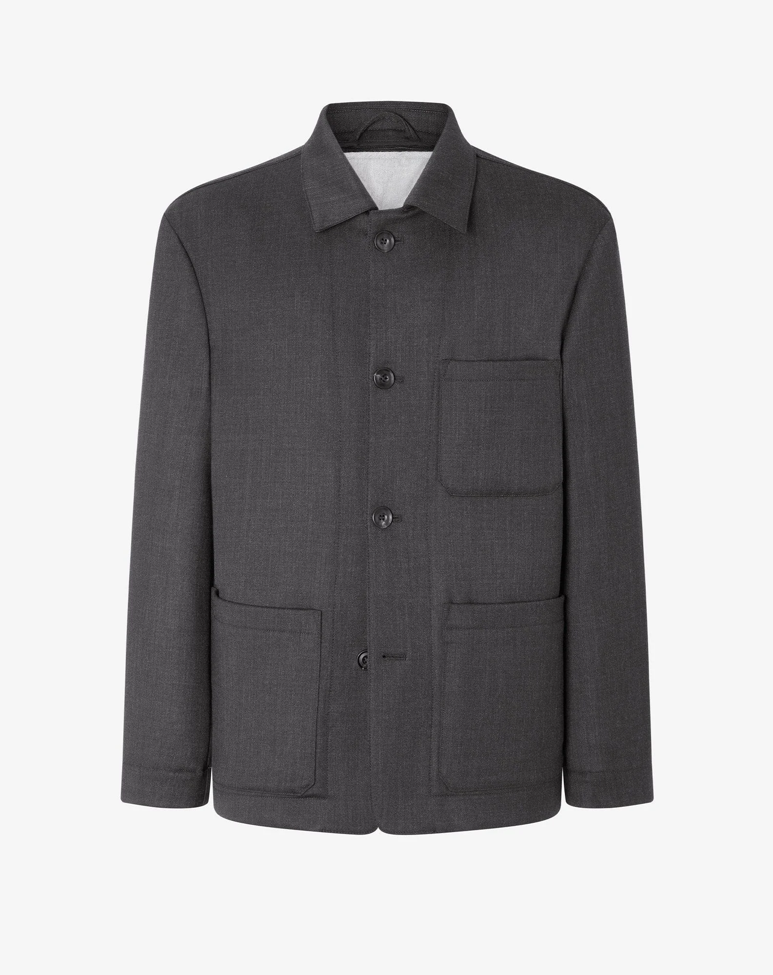 A perfect blend of technology and timeless style. This grey single-breasted four-button jacket is made of an innovative stretch technical fabric to ensure maximum freedom of movement and durability. The detachable inner lining, made from horizontally quilted flannel and slightly padded, ensures comfort and warmth during the coldest seasons. The design features a shirt collar and a regular fit with drop 7, for a perfect balance between modernity and classicism. Appliqued pockets on the chest and on the sides add functionality without sacrificing elegance. A versatile and technical garment, an expression of Italian sartorial mastery. DETAILS AND MATERIALS - 49% polyester, 28% virgin wool, 14% acrylic, 7% wool, 1% elastane - single breasted 4-button jacket with detachable horizontal quilted flannel lining with lightweight padding - drop 7 - regular fit - shirt collar - appliqued outbreast pocket - appliqued side pockets - length 75 cm - Made in Italy FIT & WASHING - Dry clean with perchloroethylene, do not bleach, do not tumble dry, maximum iron temperature 110°