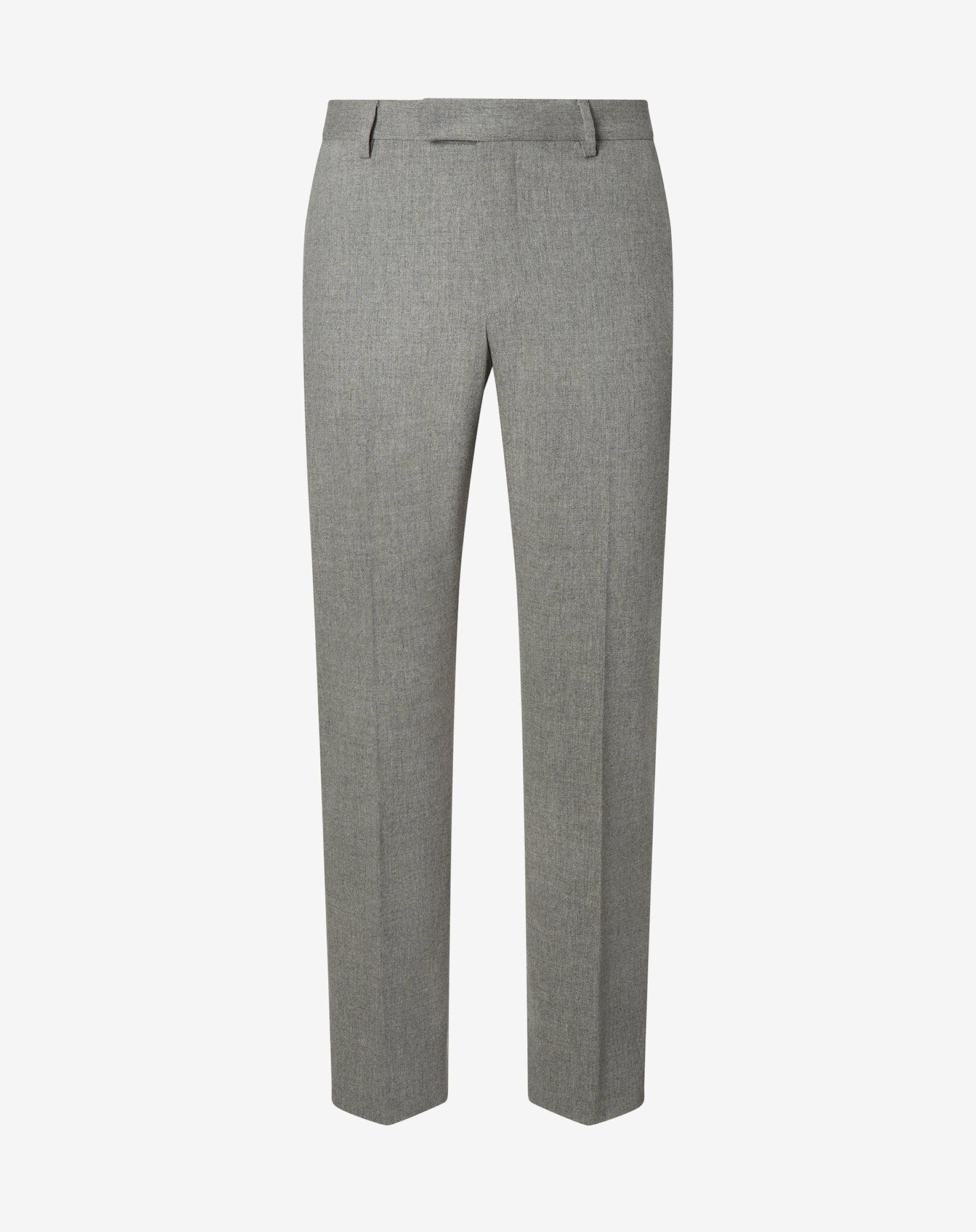 Black 11.5 oz stretch denim jeans, an innovative cotton and lyocell blend providing regular fit and superior comfort. 5-Pocket style with drop 7, zip and personalized stud button closure. Distinctive details like the embroidered logo on the coin pocket and the branded rear leather patch add an exclusive touch. Leg bottom width 18 cm, ideal for a contemporary and versatile fit. DETAILS AND MATERIALS - 94% virgin wool, 4% cashmere, 2% elastane - flat front chino trousers - unlined - drop 7 - regular fit - zip and waistband closure - belt loops - waistband with elastic on the back - slant side pockets - welt back pockets - bottom width 19 cm FIT & WASHING - Dry clean with perchloroethylene, do not bleach, do not tumble dry, maximum iron temperature 110°