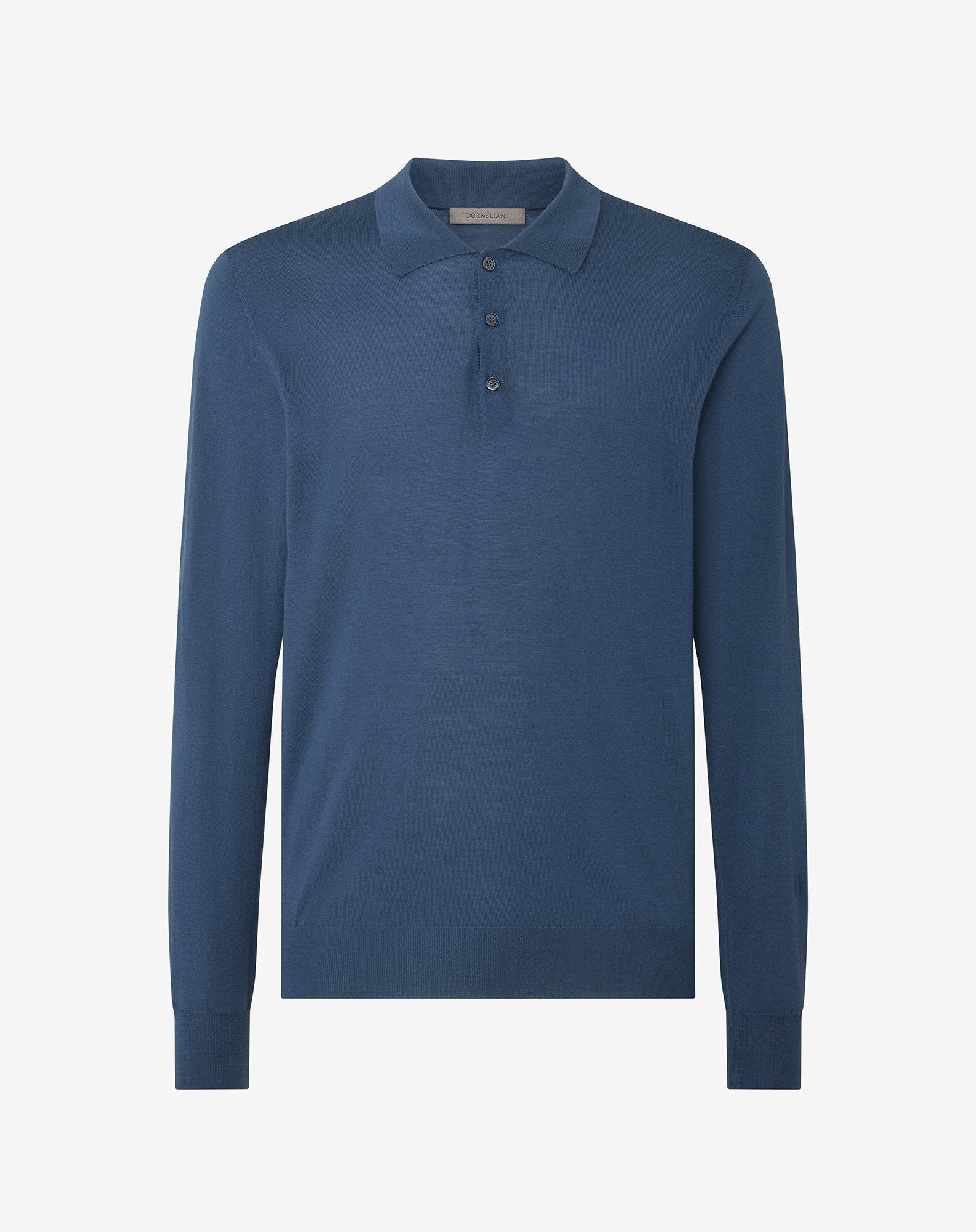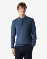This long-sleeved octane blue polo shirt, made from ultra fine gauge 18 wool has the perfect balance between elegance and excellence in hand craft. Its lightweight and incredibly soft structure adds a refined touch to the garment. DETAILS & MATERIALS - 100% virgin wool - long-sleeved buttoned polo shirt made from ultra fine 120s combed wool - 18 gauge - made in Italy FIT & WASHING - The model is wearing a size 50 (IT). Model measurements: height 187cm, chest 98cm, waist 82cm, hips 98cm. Dry clean with perchloroethylene, do not bleach, maximum iron temperature 110A°, do not tumble dry