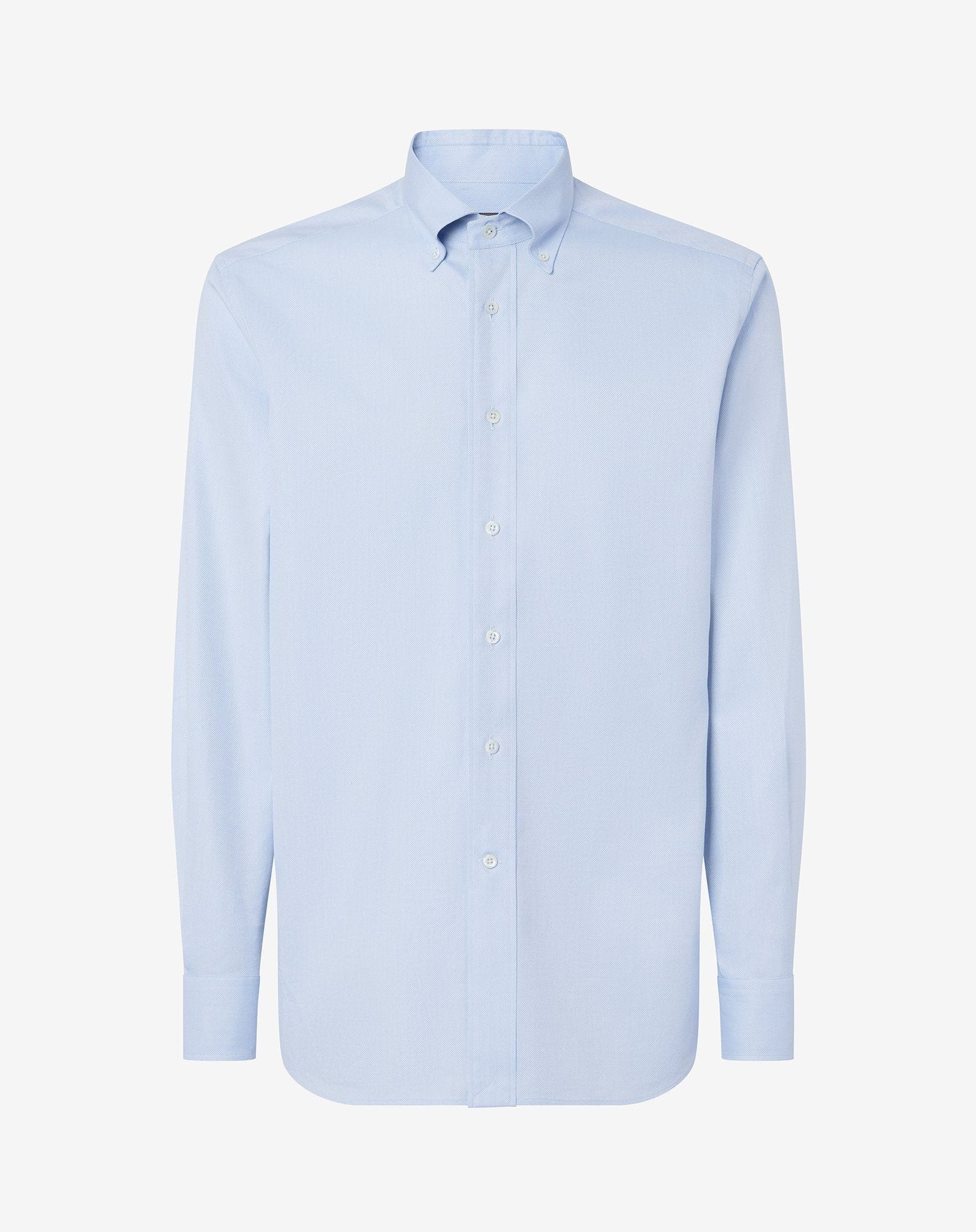 The pale blue royal Oxford cotton shirt is a garment that blends comfort and elegance on any occasion. Versatile and suitable for both casual and formal occasions, the shirta€™s rounded cuffs perfectly match the button down collar. DETAILS & MATERIALS - 100% cotton - long sleeve shirt - regular fit - button down collar - rounded cuffs - gusset with Corneliani crest FIT & WASHING - This garment has a classic fit. The model is wearing a size 41 (IT). Model measurements: height 187cm, chest 98cm, waist 82cm, hips 98cm. Warm wash up to 40°, do not bleach, maximum iron temperature 150°, dry clean with perchloroethylene, do not tumble dry
