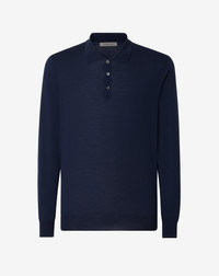 This long-sleeved pale blue polo shirt, made from ultra fine gauge 18 wool has the perfect balance between elegance and excellence in hand craft. Its lightweight and incredibly soft structure adds a refined touch to the garment. DETAILS & MATERIALS - 100% virgin wool - long-sleeved buttoned polo shirt made from ultra fine 120s combed wool - 18 gauge - made in Italy FIT & WASHING - The model is wearing a size 50 (IT). Model measurements: height 187cm, chest 98cm, waist 82cm, hips 98cm. Dry clean with perchloroethylene, do not bleach, maximum iron temperature 110°, do not tumble dry