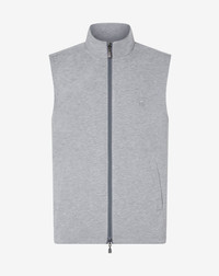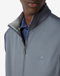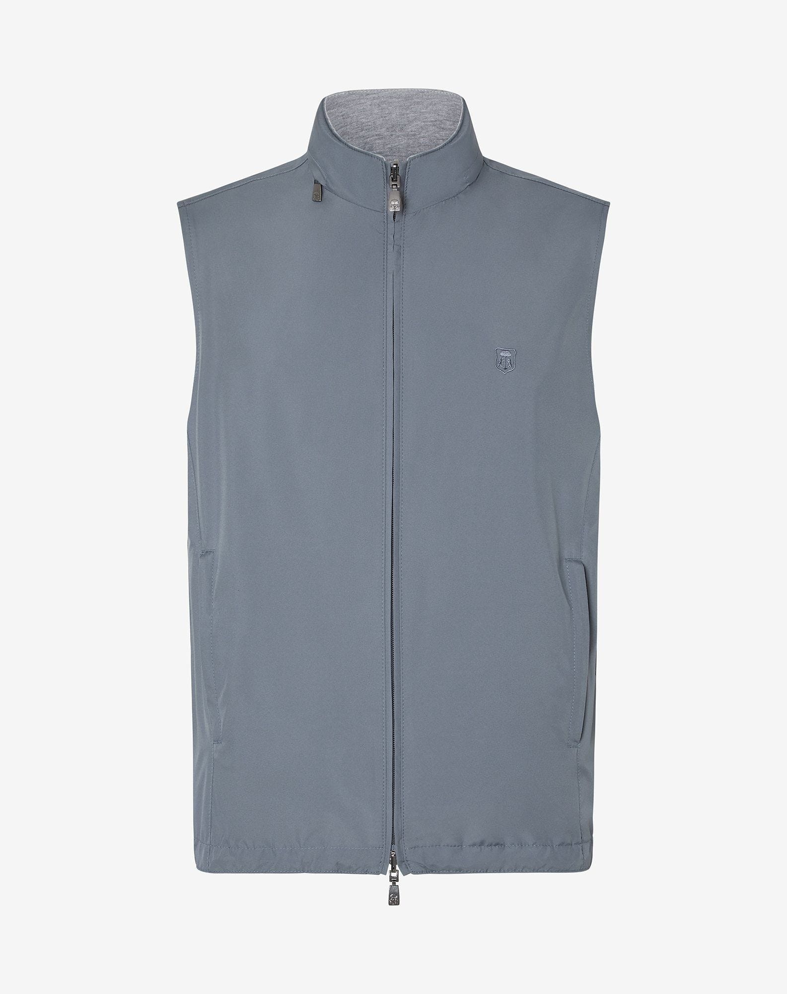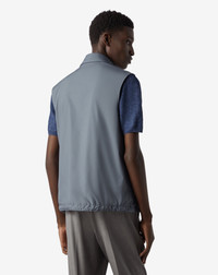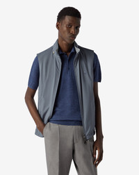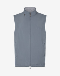 The reversible Men's waistcoat is an iconic piece of spring clothing. Corneliani proposes a garment with a sporty vibe enriched by a technical water-repellent and ultra-light fabric. The front zip fastening, drawstring hood and adjusters at the bottom enhance the sporty vibe of the garment. Style note: the Corneliani crest embroidered on the chest. DETAILS & MATERIALS - 100% polyester - reversible gilet made from ultra-lightweight, water-repellent technical fabric - front zip closure - hood with drawstring and adjusters - drawstring with adjuster tips - two welt back pockets with zip - Corneliani crest embroidery on the breast - grey jersey inner lining FIT & WASHING - The model is wearing a size 50 (IT). Model measurements: height 187cm, chest 98cm, waist 82cm, hips 98cm. Dry clean with perchloroethylene, do not bleach, iron at 110° maximum, do not use dryer