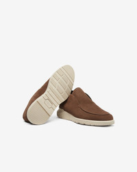 Soft taupe suede and minimalist lines for these slip-on ankle-length loafers designed for a classy casual style. The light rubber sole guarantees comfort and flexibility all day long. A versatile style crafted with mastery. Made in Italy. DETAILS & MATERIALS - 100% leather - slip-on ankle-length suede loafer - rubber sole - Made in Italy