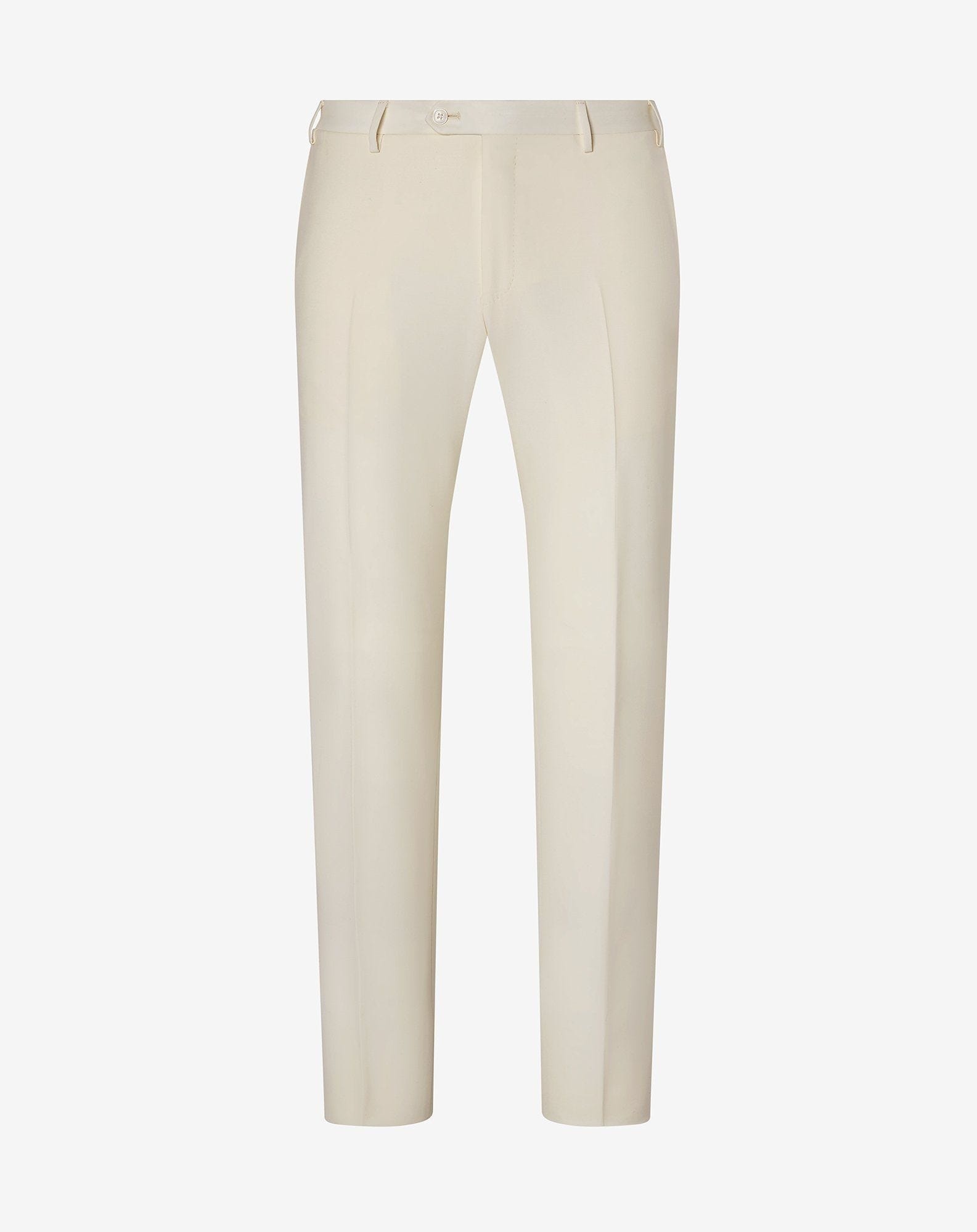 With its Corneliani Code formal menswear collection, Corneliani chooses the best in sartorial elegance to celebrate your special days and make them unforgettable. Smart and slim fit, these extra fine wool faille trousers are an essential component of any man's formal wardrobe. DETAILS AND MATERIALS - 100% virgin wool - S120's wool faille trousers - flat front - slim fit - drop 8 - two slant side pockets - two welt back pockets with buttons - bottom 18 cm FIT & WASHING - The model is wearing a size 50 (IT). Model measurements: height 187cm, chest 98cm, waist 82cm, hips 98cm.