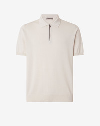 Made in Italy, the Men's short-sleeved white Pima cotton polo shirt is the premium item in the men's summer wardrobe. Cool and versatile, it adapts to different situations ensuring maximum comfort and breathability. The enzyme wash provides extra softness. DETAILS & MATERIALS - 100% cotton - short-sleeved zipped polo shirt made from garment-dyed enzymated Pima cotton - 14 gauge - made in Italy FIT & WASHING - The model is wearing a size 50 (IT). Model measurements: height 187cm, chest 98cm, waist 82cm, hips 98cm. Dry clean with perchloroethylene, do not bleach, maximum iron temperature 110°, do not tumble dry