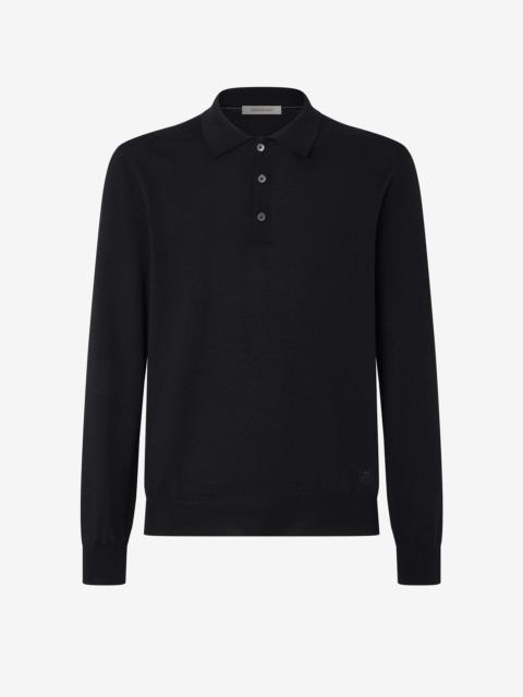Black extra fine merino wool button-up polo
