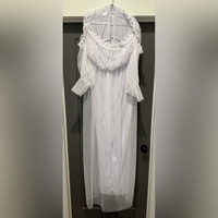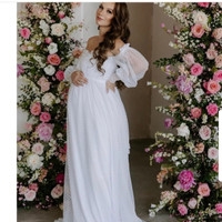 Worn for about an hour for maternity pictures. In pristine condition with no snags or tears. Fits & Features Off the shoulders Floor Length Hemline Knit Lined Fabric I Dotted design fabric Form Hugging Top with flared skirt