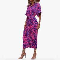 Miluma - Women's Printed Button Up Belted Midi Dress