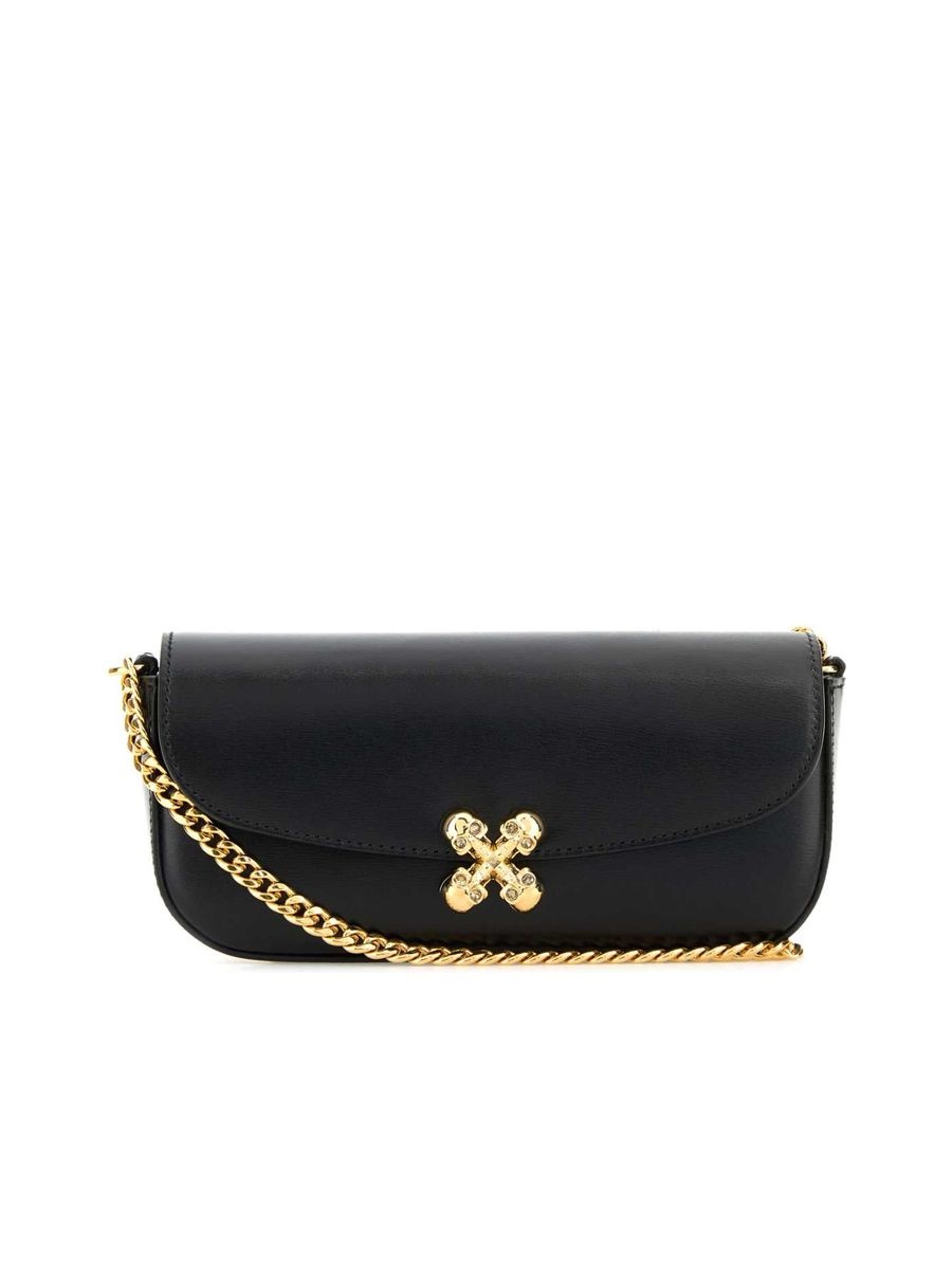 - Colour: Black - Composition: Exterior: 100% Calf Lining: 100% Fabric Finishing: Golden metal - Made in: IT - Style ID: 8360371MAAE_1000 - Measurements: Width: 21cm x Height: 8cm x Depth: 4cm - Shoulder strap length: 56cm