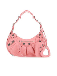 Women's Le Cagole Small Shoulder Bag Crocodile Embossed in Pink