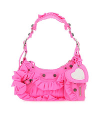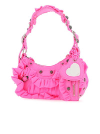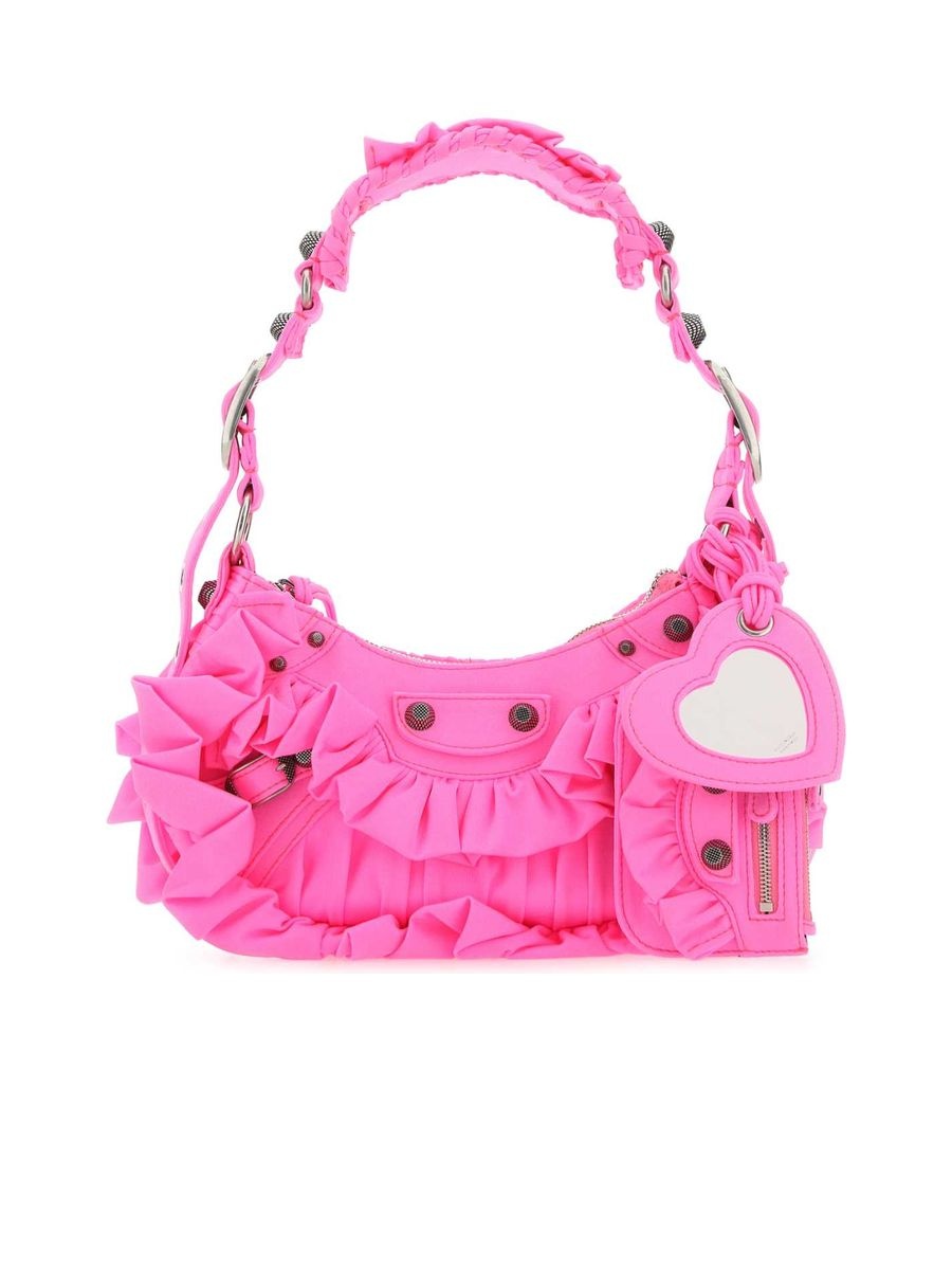 Women's Le Cagole Xs Shoulder Bag With Ruffles in Acid Pink