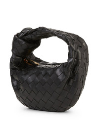 - Mini intrecciato leather top handle bag - Colour: Black - Material: 100% Lambskin - Lining: Calfskin - Knotted top handle - Zipper closure - Hardware: Gold - Style ID: 651876VCPP58425 - Dust bag & authenticity card - Made in Italy Measurements - Width: 26cm x Height: 14cm x Depth: 8cm - Handle drop: 6cm