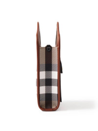 Check and Leather Mini Pocket Bag in Dark Birch Brown