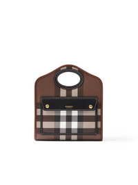 - Check and Leather Mini Pocket Bag - Colour: Dark Birch Brown - Outer: 55% Cotton, 45% Polyurethane - Trim: 100% Calf leather - Lining: 60% Cotton, 40% Polyester - Leather top handles - Detachable, adjustable shoulder strap - One exterior flap pocket with magnetic closure, one interior zip pocket - Open top - Hand-painted edges - Polished metal hardware - Embossed Burberry lettering at front - Style ID: 8071386 - Dust bag & Authenticity card - Made in Italy - Length: 23cm x Height: 26.5cm x Depth: 6cm - Min. shoulder strap drop: 44cm - Max. shoulder strap drop: 49cm