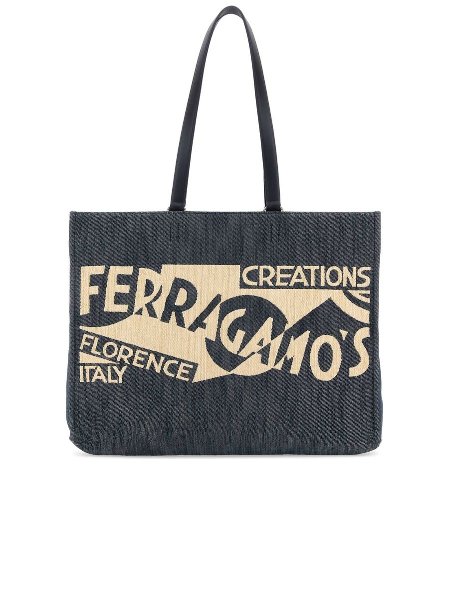 - Colour: Blue - Composition: Exterior: 100% Fabric Lining: 100% Fabric Finishing: Golden metal - Made in: IT - Style ID: 219405773826_DENNATMIDMID - Measurements: Width: 44.5cm x Height: 33cm x Depth: 15.5cm - Handle height 1: 15cm - Handle height 2: 30cm