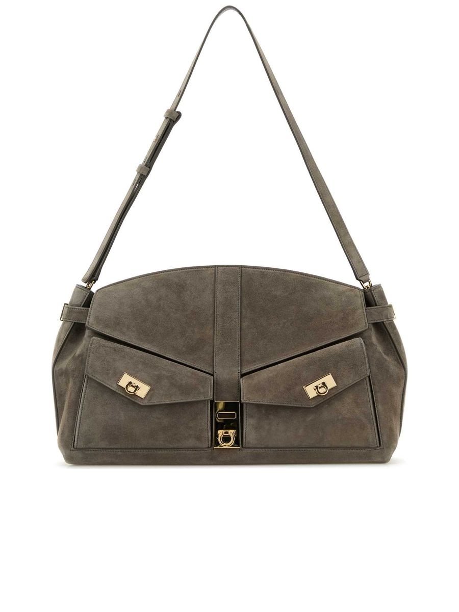 - Colour: Grey - Composition: Exterior: 100% Suede Lining: 100% Pelle Finishing: Golden metal - Made in: IT - Style ID: 219983784188_CONCRETE - Measurements: Width: 35cm x Height: 23cm x Depth: 17cm - Min shoulder strap length: 25cm - Max shoulder strap length: 34cm