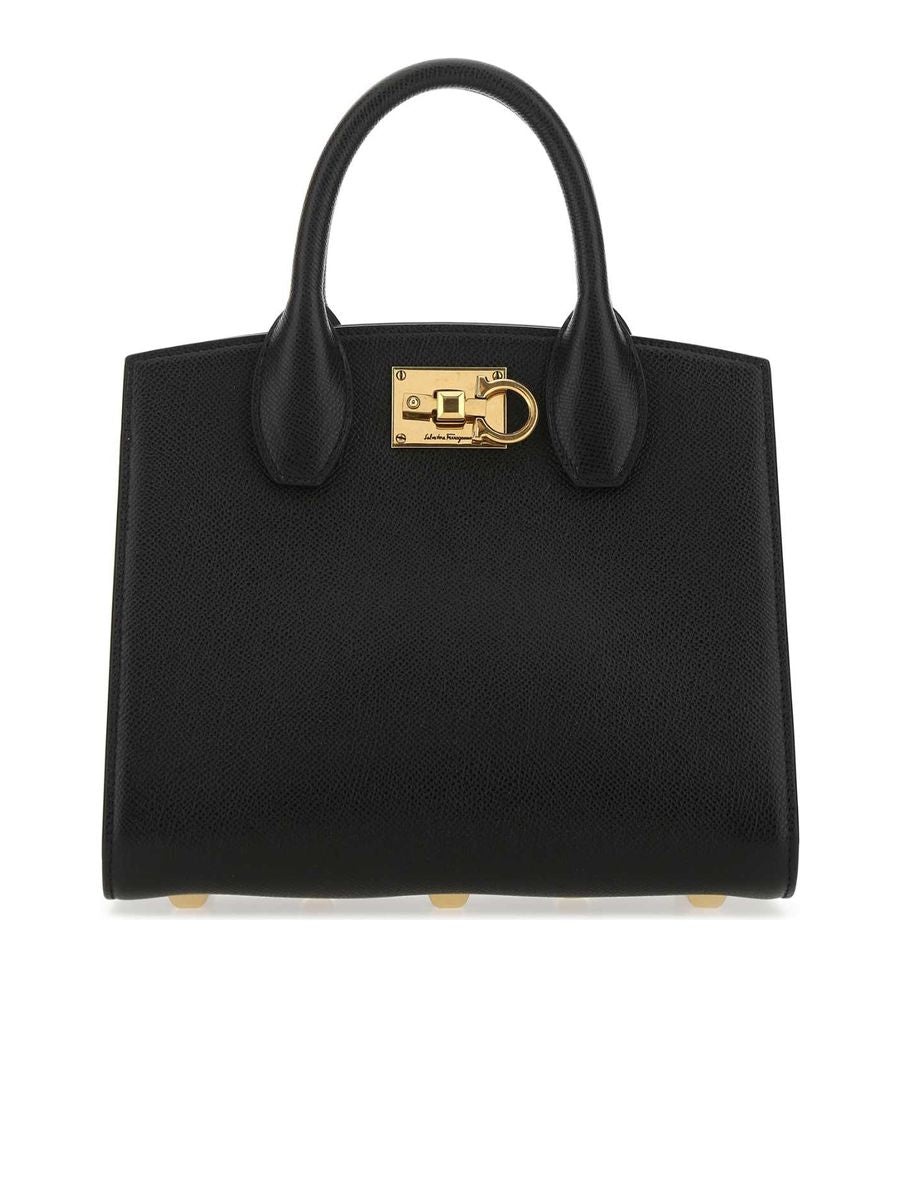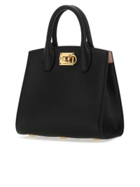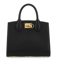- Colour: Black - Composition: Exterior: 100% Leather Lining: 100% Leather Finishing: Antiqued golden metal - Made in: IT - Style ID: 211424750036_NEROBONBON - Measurements: Width: 22cm x Height: 18cm x Depth: 11cm - Shoulder strap length: 40-47cm - Handle height: 8cm