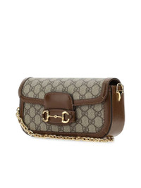 Gucci Horsebit 1955 Small Shoulder Bag in Beige and Ebony GG Supreme