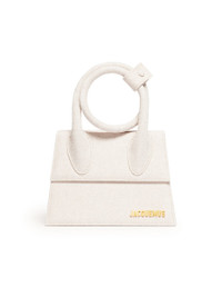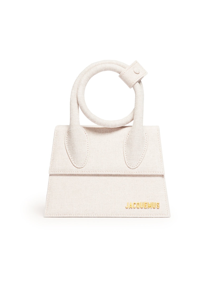 - Le Chiquito Noeud - Colour: Light Greige - 49% Linen - 33% Cotton - 18% Acrylic - Coiled handbag - Linen structured bag - Extendable top handle that can be wrapped and snapped closed - Magnetic flap closure - Long removable strap - Engraved lobster clip - Interior pocket - Gold metal logo and hardware - Fully lined in cotton - Style ID : 213BA0053071140 - Dust bag & Authenticity card - Made In Spain Measurements - Width: 18cm x Height: 13.5cm