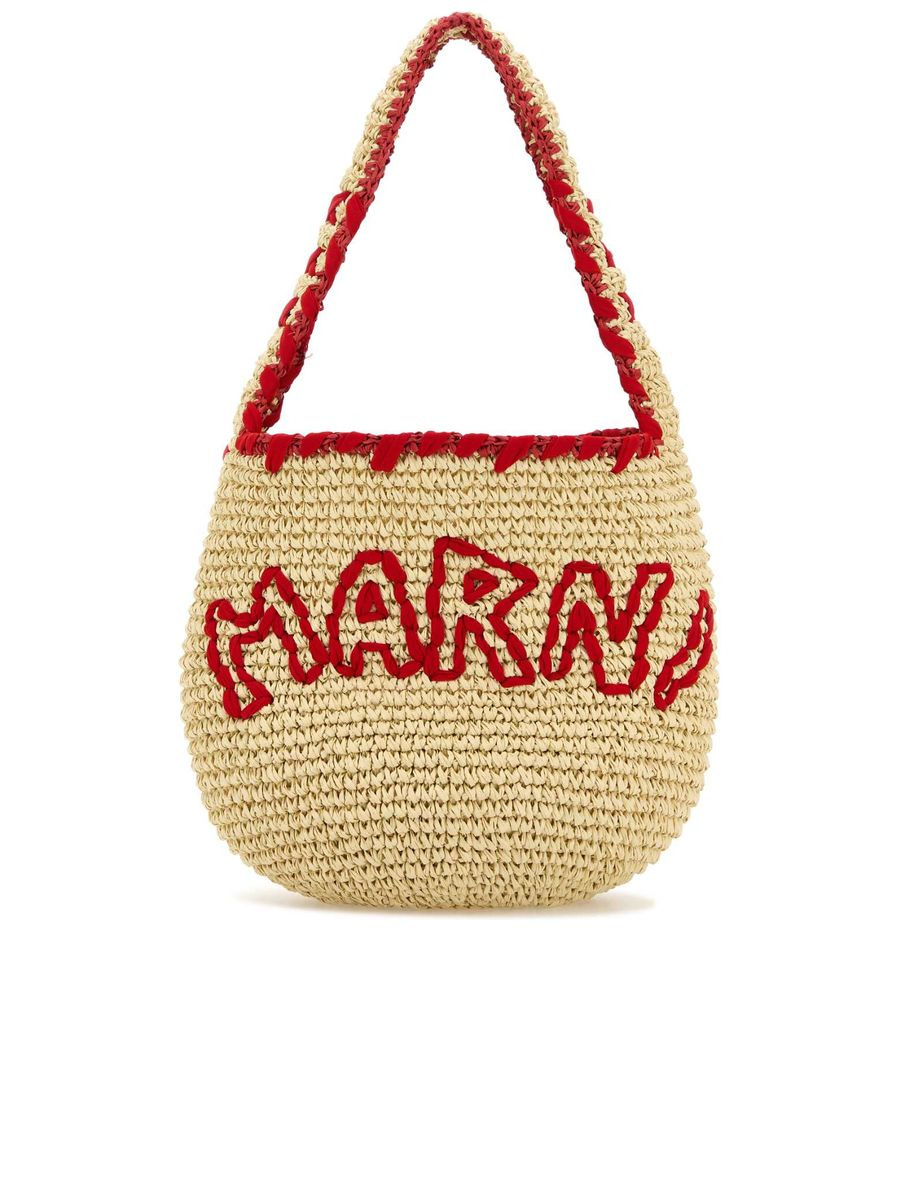 NATURAL RAFFIA AND RED NASSA SMALL HOBO BAG