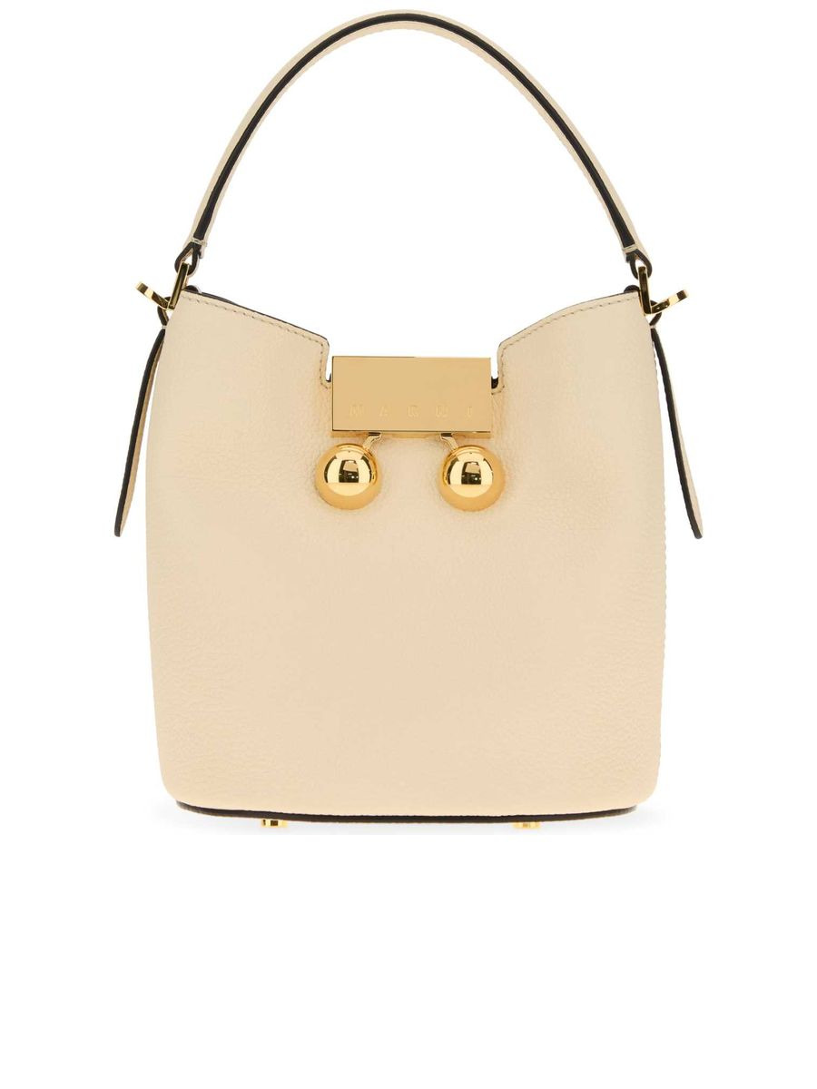 - Colour: White - Composition: Exterior: 100% Bovine leather Lining: 1005 Bovine leather Finishing: Golden metal - Made in: IT - Style ID: SCMP0081U0P8185_00W12 - Measurements: Width: 19cm x Height: 21cm x Depth: 11cm - Shoulder strap length: 44cm - 56cm - Handle height: 9cm