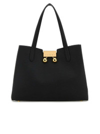 BLACK LEATHER TRUNKAROO TOTE HANDBAG