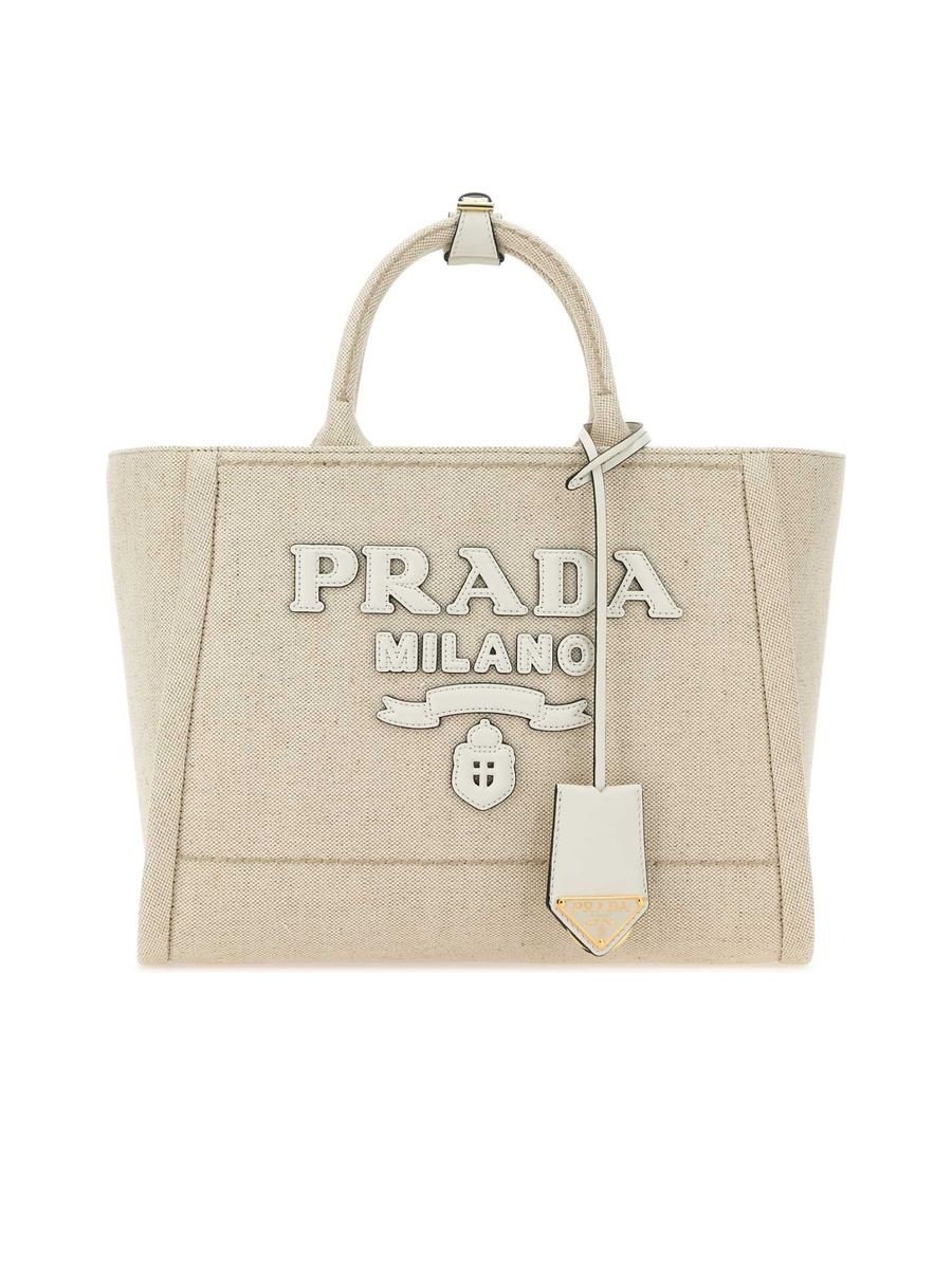 - Colour: Beige o tan - Composition: Exterior: 100% Fabric Lining: 100% Fabric Finishing: Golden metal - Made in: IT - Style ID: 1BG474VOHO2DLI_F0N86 - Measurements: Width: 31cm x Height: 24cm x Depth: 13cm - Handle height: 12cm