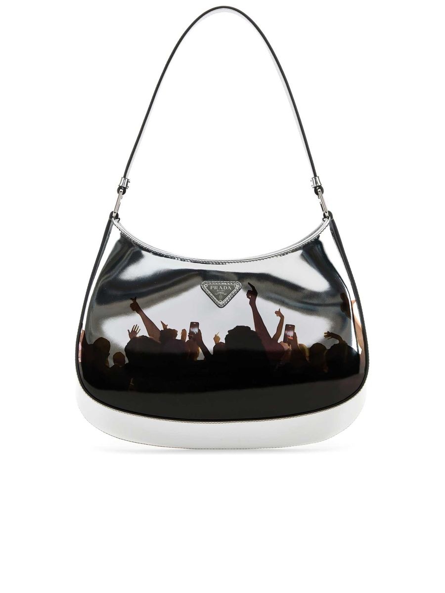 - Colour: Silver - Composition: Exterior: 100% Calf Lining: 100% Fabric Finishing: Silver metal - Made in: IT - Style ID: 1BC499VOO32C34_F0118 - Measurements: Width: 27cm x Height: 22cm x Depth: 6cm - Handle height: 23cm