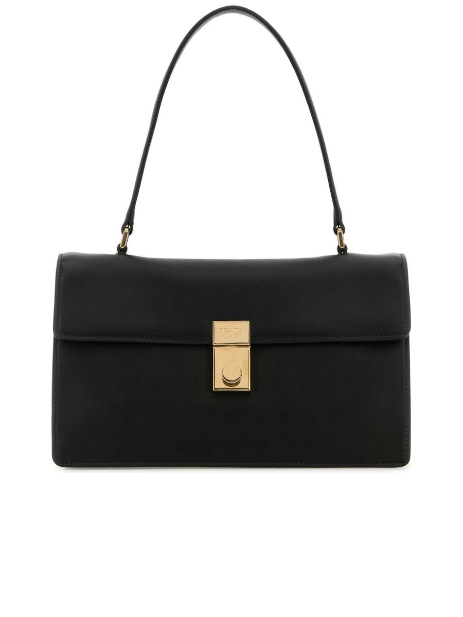 - Colour: Black - Composition: Exterior: 100% Leather Lining: 100% Leather Finishing: Golden metal - Made in: IT - Style ID: 1BN0232CYS_F0002 - Measurements: Width: 28cm x Height: 17cm x Depth: 12cm - Handle height: 19cm