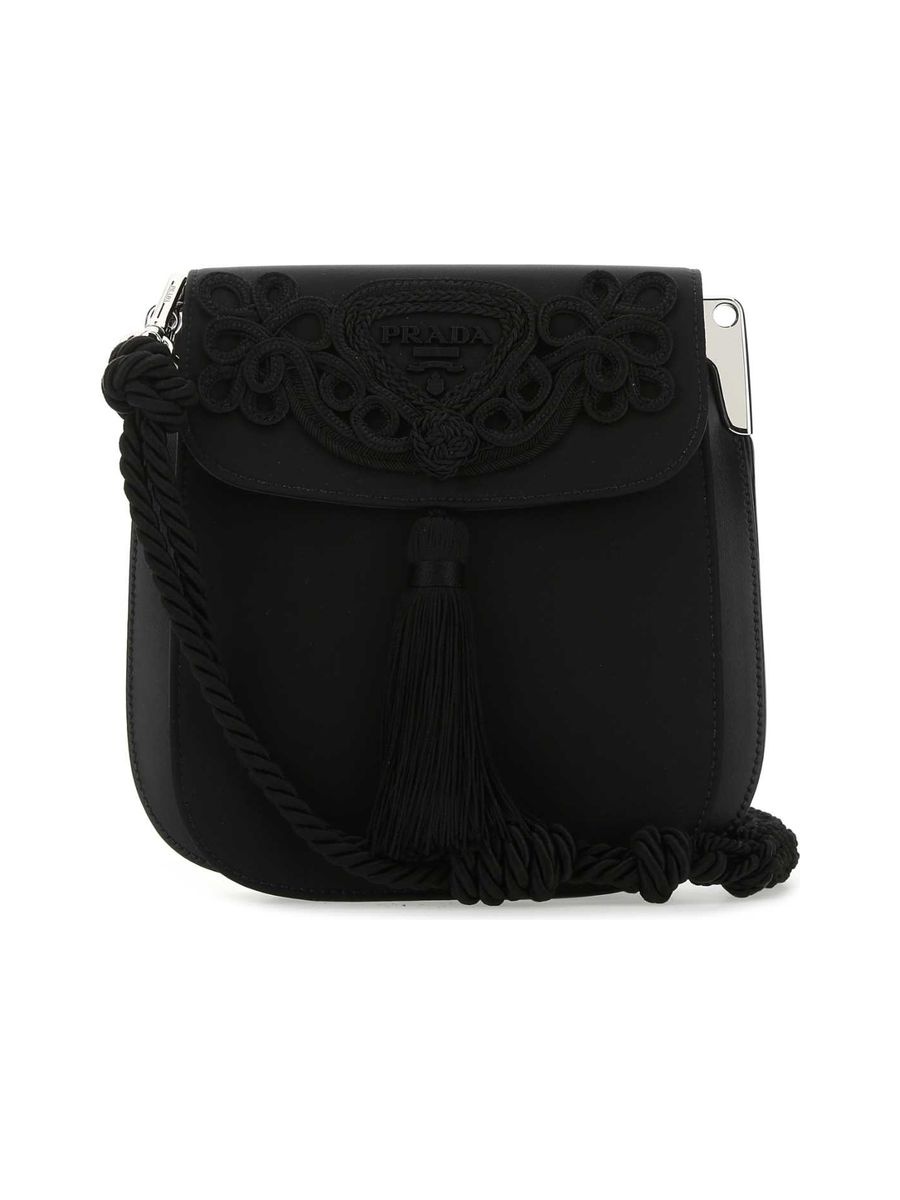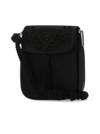 - Colour: Black - Composition: Exterior: 100% Nylon 100% Leather Lining: 100% Fab - Made in: IT - Style ID: 1BD259VPOW2A6S_F0002 - Measurements: Width: 20cm x Height: 19cm x Depth: 6cm - Shoulder strap length: 50cm