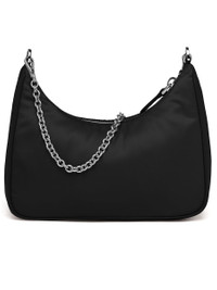 - Prada Re-Edition 2005 Nylon Bag - Colour: Black - Saffiano leather details - Detachable chain handle - Detachable and adjustable 85 cm logo-print woven shoulder strap - Removable nylon pouch with zipper and Re-Edition keychain - Metal hardware - Enameled metal triangle logo on the front - Zipper closure - Prada logo nylon lining - Brand code: 255 - Style ID: 1BH204_064_F0002_V_V1L - Dust bag & Care card - Made in Italy Measurements - Width: 22cm x Height: 18cm x Depth: 6.5cm
