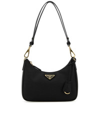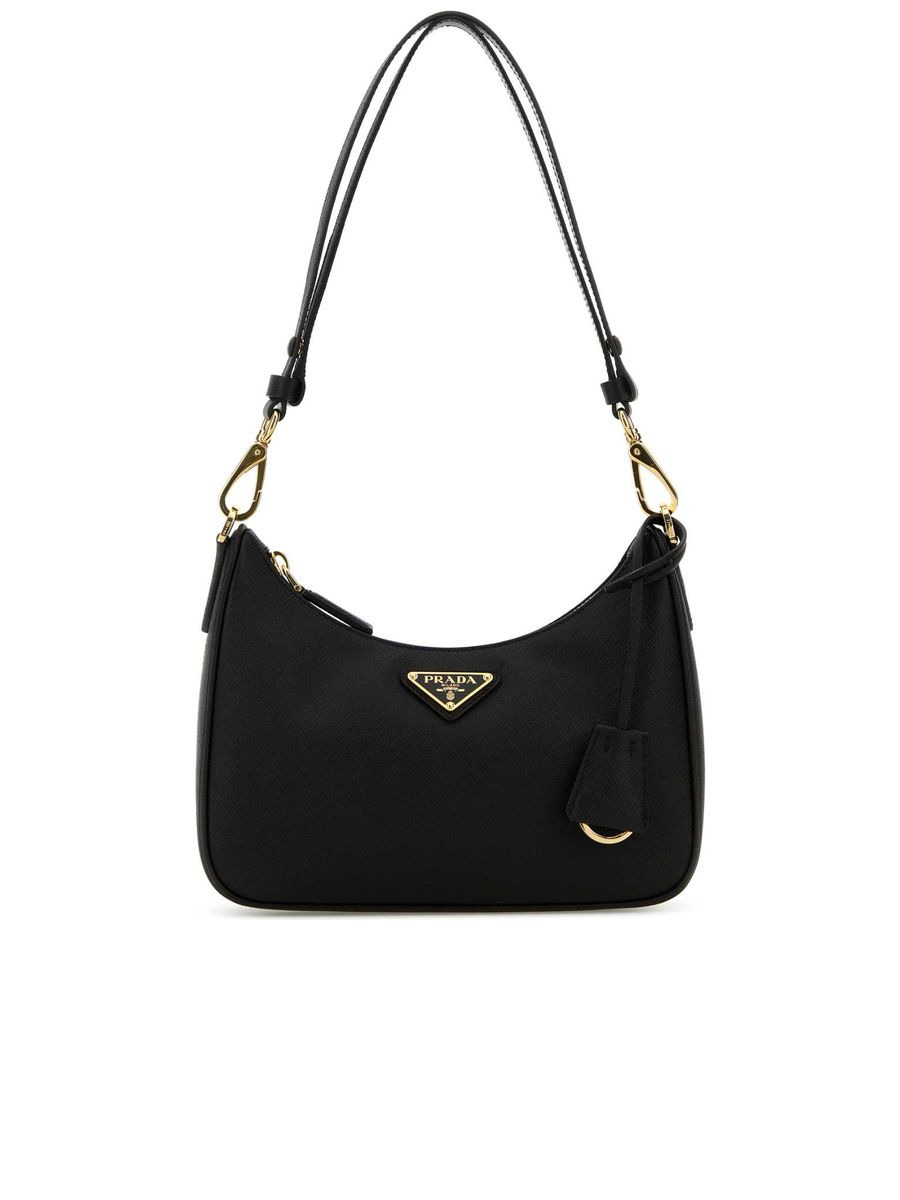 - Colour: Black - Composition: Exterior: 100% Leather Lining: 100% Re-Nylon Finishing: Golden metal - Made in: IT - Style ID: 1BC204VQOMNZV_F0632 - Measurements: Width: 22cm x Height: 13cm x Depth: 7cm - Shoulder strap length: Adjustable from 29.5cm to 47cm - Handle drop: 27cm