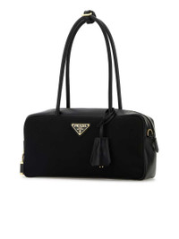 Re-Nylon and leather small top-handle bag