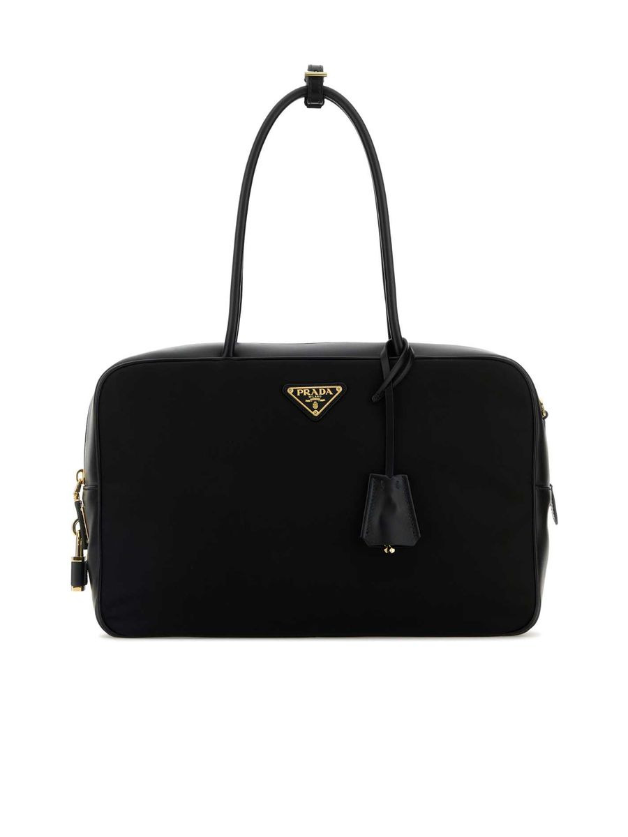 - Colour: Black - Composition: Exterior: 100% Calf 100% Re-Nylon Lining: 100% Re-Nylon Finishing: Golden metal - Made in: IT - Style ID: 1BB131VODO2C8Q_F0002 - Measurements: Width: 34cm x Height: 22cm x Depth: 10cm - Handle height: 20cm