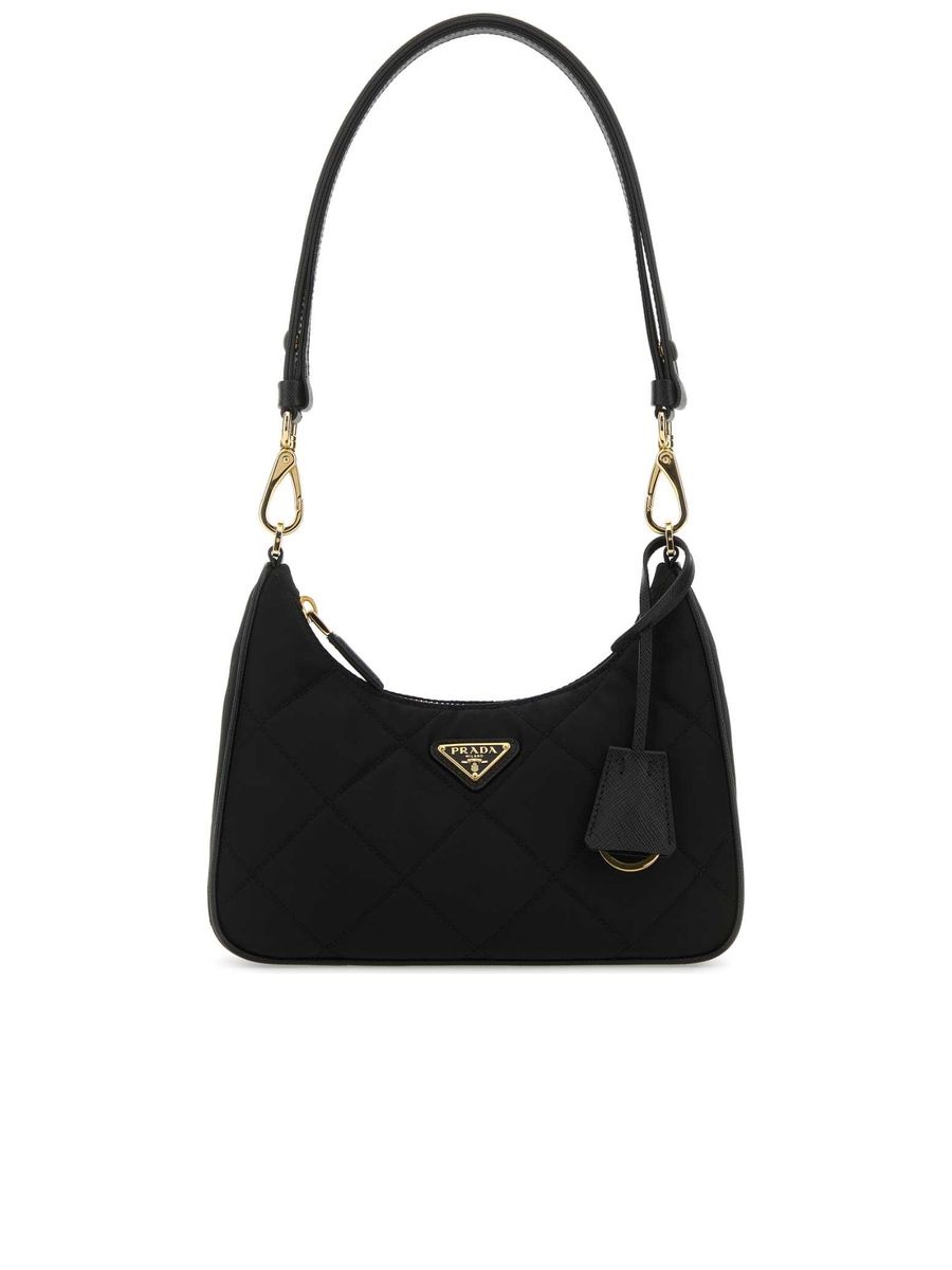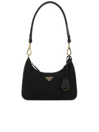 - Colour: Black - Composition: 100%POLIAMMIDE RICICLATA-100%VITELLO - Made in: IT - Style ID: 1BC204VQOO2AOS_F0002 - Measurements: Width: 22cm x Height: 12cm x Depth: 6cm - Shoulder strap length: 28-45cm - Handle drop: 22cm