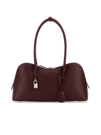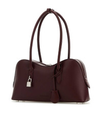 - Colour: Burgundy - Composition: Exterior: 50% Nylon 50% Polyester Lining: 100% Leather Finishing: Golden metal - Style ID: 7B0138WP0533_6017 - Measurements: Width: 36cm x Height: 17.5cm x Depth: 10cm - Handle height: 21cm