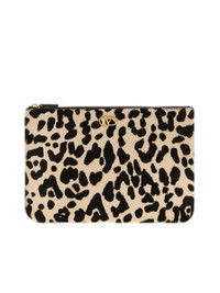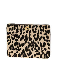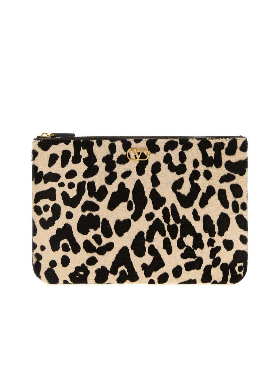 VLogo Signature medium leopard-print calf-hair clutch Leopard print