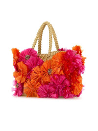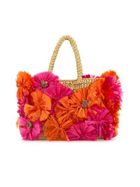 SMALL SHOPPING BAG IN SYNTHETIC RAFFIA WITH FLOWERS AND BEADS