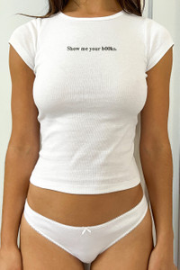 For the curious mind & heart, our classic cotton jersey tee. A portion of proceeds will support our charity partner, Room to Read, working to empower girls through literacy. In collaboration with Sendb00ks. Designed by Gemma Janes. FABRIC & CARE Consciously made with our signature, bespoke 100% Organic Cotton Pointelle. Fabric: 100% Organic Cotton Pointelle To take care and keep your Cou Cou's looking cuter, for longer, just wash your pieces on gentle, lay flat to dry & voila! These more gentle care methods aren’t just better for your Cou Cou's, they’re better for the planet, too. Designed in London. Made in Portugal. SIZE & FIT Shrunken fit, with a full-length body and scoop neck. The Baby Tee: Cotton Jersey fits true to size. Size up for a more relaxed or longer fit. In order of appearance: The model wears a XS in The Baby Tee Regular.